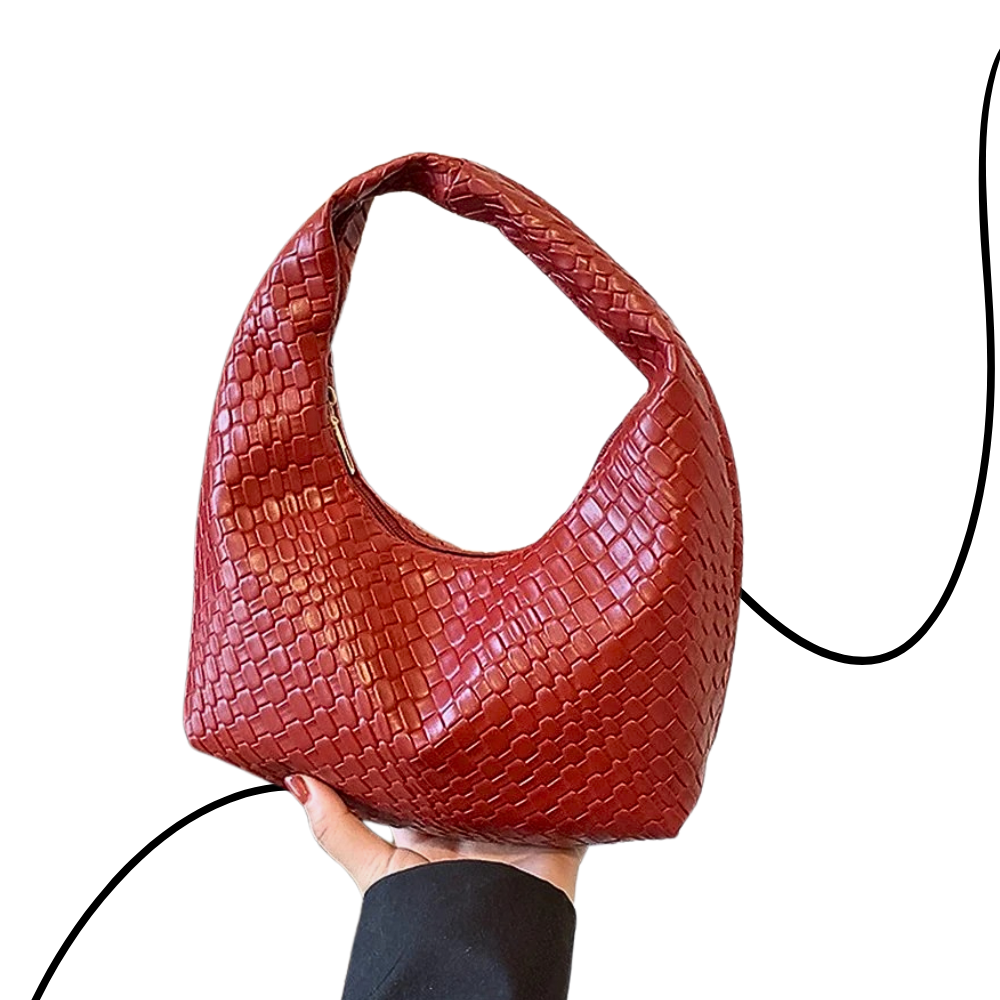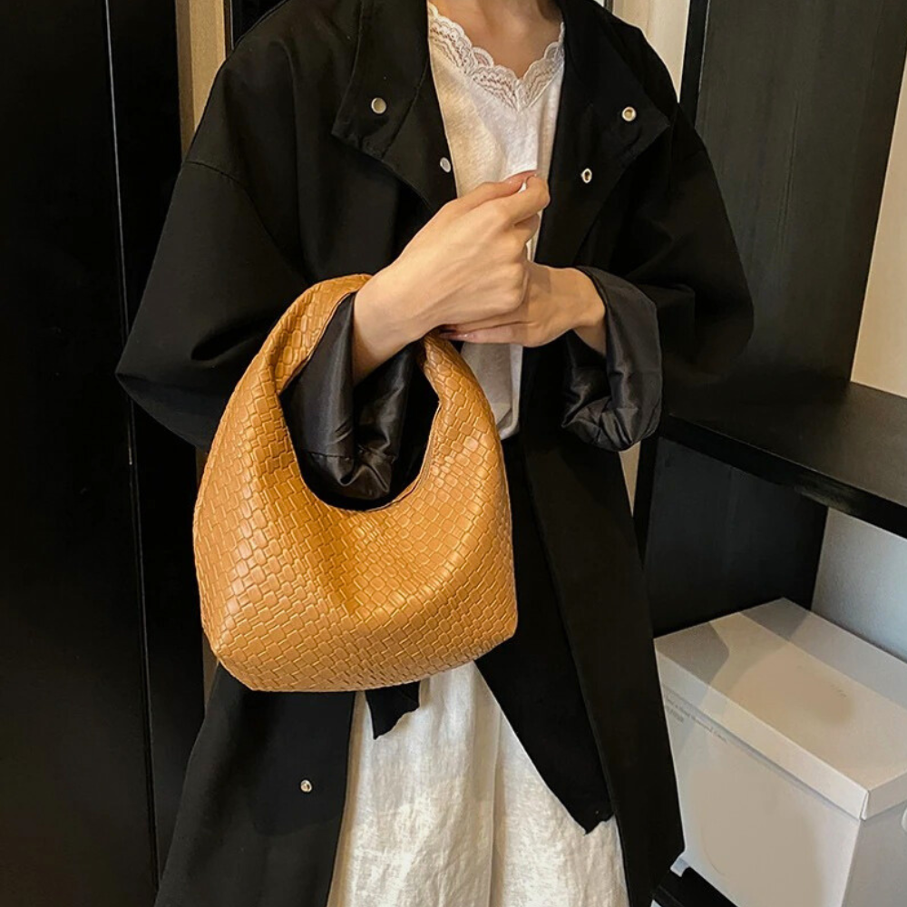 Diese Tasche ist mehr als nur ein Accessoire, sie ist ein Statement. Mit ihrer gewebten Prägung, dem weichen Material und der perfekten Größe begleitet sie dich stilvoll durch den Tag.
