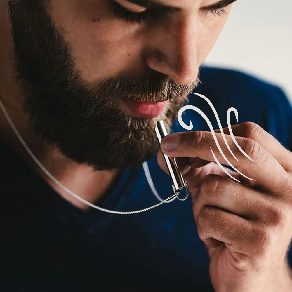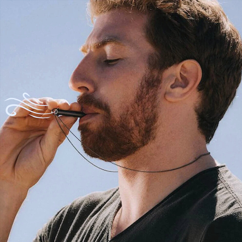 Durch das kontrollierte Ausatmen über die Halskette (ähnlich dem Prinzip des verlängerten Ausatmens) lernst du, bewusst und tief zu atmen.